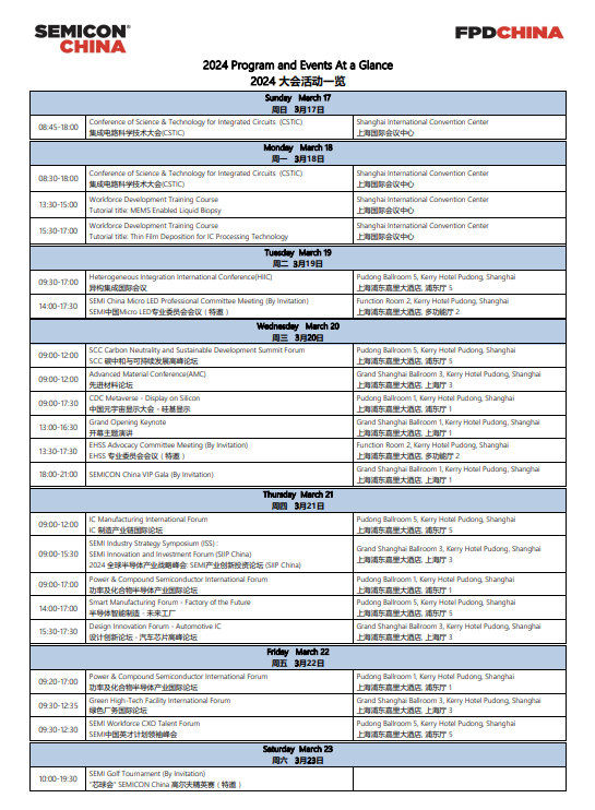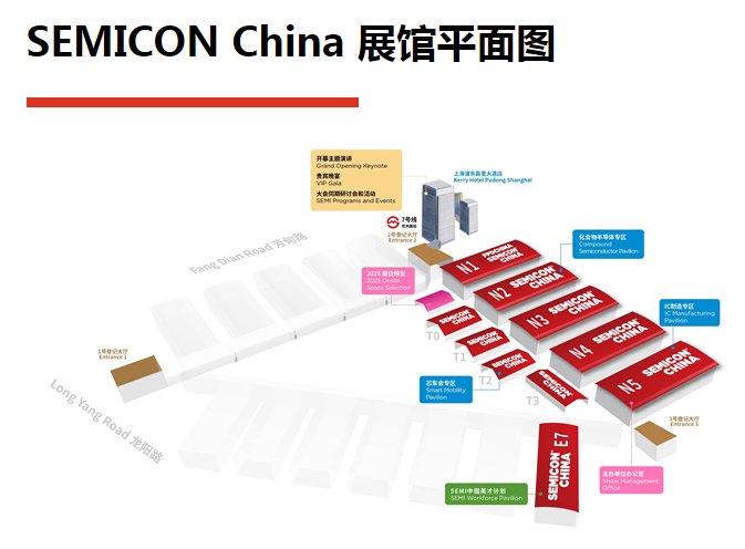 2024 SEMICON China 開幕在即,此次設(shè)置了四個主題專區(qū):IC 制造專區(qū)、化合物半導(dǎo)體專區(qū)、SEMI 中國英才計劃專區(qū)、芯車會專區(qū)。展館分布在 N1-N5、T01-T7、E3,還有更多盛大活動和同期會議與您共享半導(dǎo)體產(chǎn)業(yè)盛宴:開幕主題演講、英才計劃領(lǐng)袖峰會、半導(dǎo)體制造技術(shù)產(chǎn)業(yè)鏈論壇、創(chuàng)新投資高峰論壇、功率及化合物半導(dǎo)體國際論壇、中國元宇宙顯示大會-硅基顯示等。?