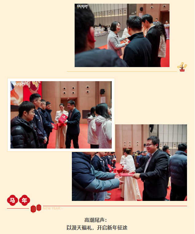年會的尾聲,管理層向空中拋灑出象征祝福與驚喜的福袋,將全場氣氛推向頂點。