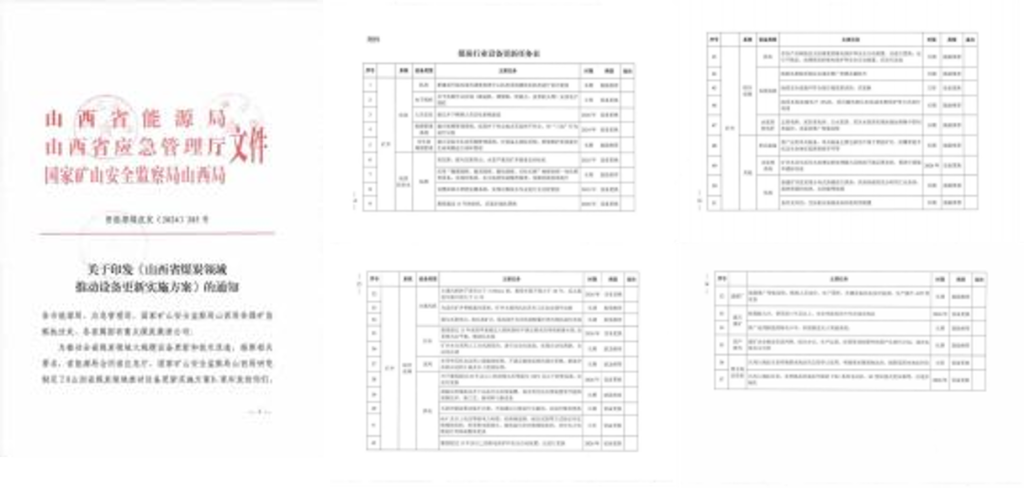 日前 , 山西省能源局會同省應(yīng)急廳、 國家礦山安全監(jiān)察局山西局研究制定了《山 西省煤炭領(lǐng)域推動設(shè)備更新實(shí)施方案》 (以下簡稱《方案》 ) , 提出依法依規(guī)淘汰 一批落后設(shè)備、 因地制宜更新一批老舊設(shè)備、 適度超前推廣一批先進(jìn)設(shè)備 , 全方位 推動煤礦及選煤廠設(shè)備向高端、 智能、 綠色、 安全方向更新改造。